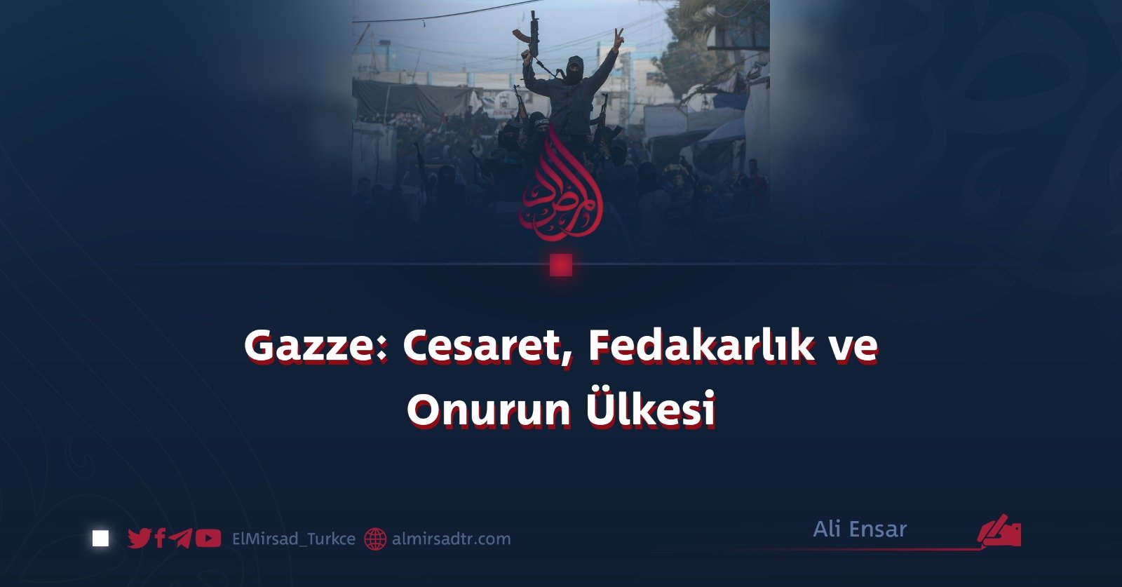 Şimdi de Gazze cesaret ve dayanıklılığın bir işareti olarak duruyor. Çaresizlik, savunmasızlık ve izolasyonla karşı karşıya kalmasına rağmen Gazze, Kudüs’ün mukaddesatını ve kutsal İslam dinini korudu. Yaklaşık 500 günlük çatışma boyunca Gazze, her gün yüzlerce kişinin şehid edildiği amansız bir mücadeleye katlandı. Bir zamanlar canlı olan Gazze şehri, her köşesinde şehid bir çocuk ve her yıkılmış binada yas tutan bir yaşlının yaşadığı bir mezarlığa ve harabeye dönüştü. Her siperden şehidlerin kanının misk kokusu yayılıyordu.