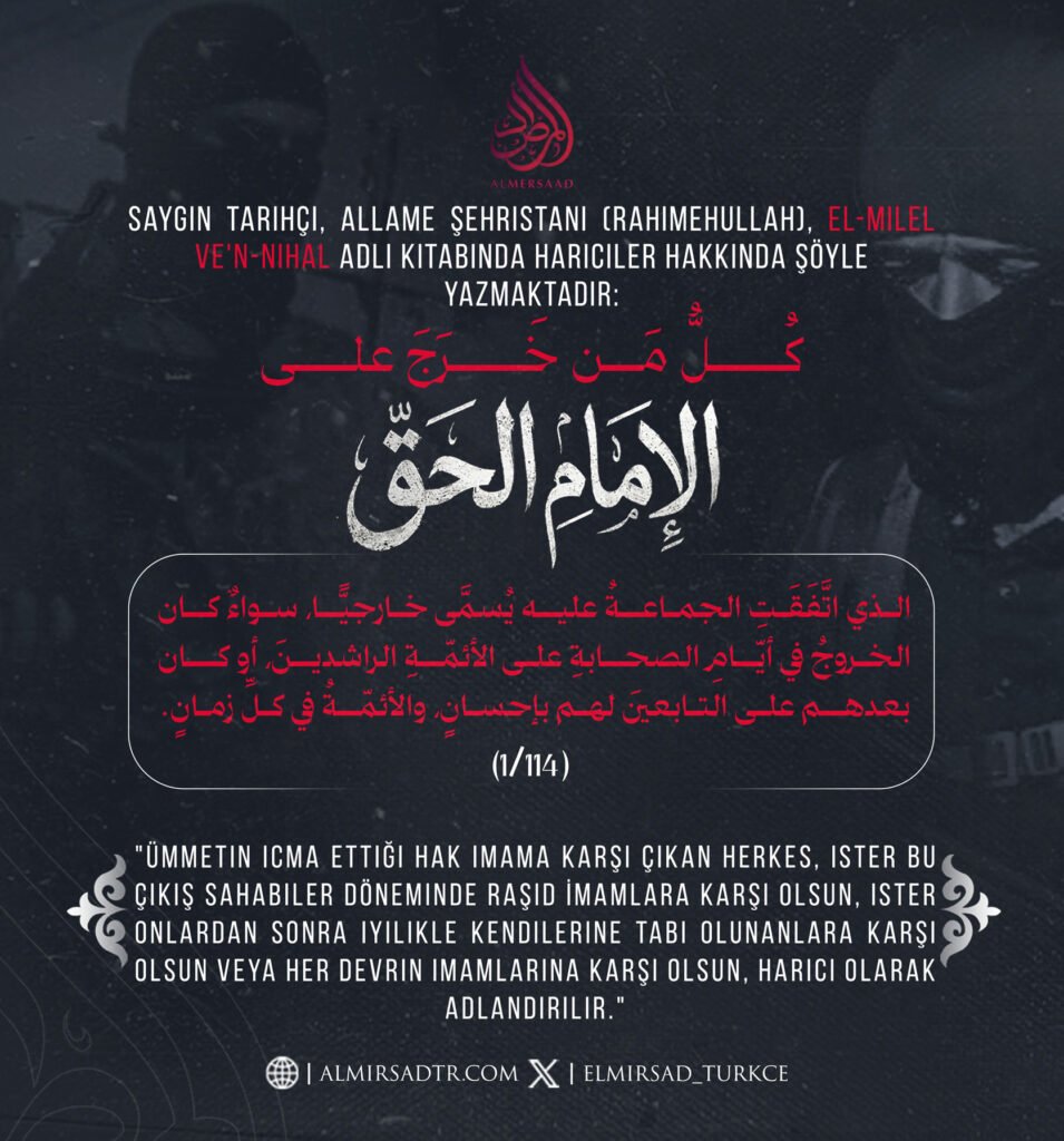 Saygın tarihçi, Allame Şehristani (rahimehullah), el-Milel ve’n-Nihal adlı kitabında Hariciler hakkında şöyle yazmaktadır: